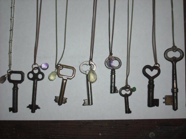 It always drives me nuts when people don't appreciate homemade gifts,local artisans, or antiques. Growing up in the antique business, I learned how unique and special things are. I have always appreciated it. Doing something creative with old things is really special, I think. Being able to look at an object and picture it created into something else...kind of amazing. A lot of people ask me when I wear my key jewelry,"what is the key to?" They usually reply with a corny line like, "to your heart?" I actually have no idea what the keys go to. I can distinguish which keys are clock keys, doors keys, and furniture keys but I have no clue what particular clock, door, or furniture each key goes to. So I wear this key around my neck that goes to a door that is somewhere in the world right now and I have no idea where. The door has possibly even been made into something else. Kind of neat to think of.